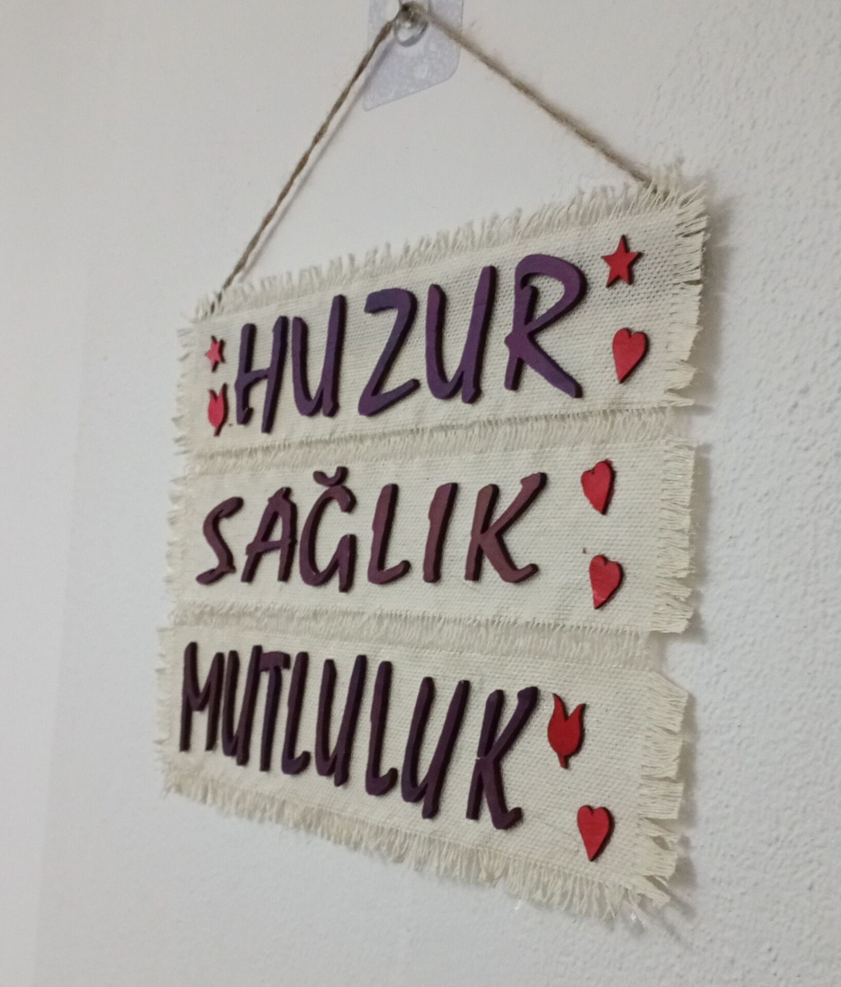 22cm x 30cm ölçülerinde, 3 lü keten bez üzerine ahşap yazı ile huzur, sağlık, mutluluk yazısıMerhaba! Ahşap yazılı keten bez, ev dekorasyonunuz için harika bir seçenek olabilir. Doğal malzemelerin kullanıldığı bu ürün, rustik ve şık bir görünüm sunar. Evinizde veya ofisinizde duvarlarınızı süslemek için mükemmel bir seçenek olabilir. Ahşap ve ketenin birleşimi, sıcak ve doğal bir atmosfer yaratır. Bu dekoratif ürün, doğal elementleri sevenler için ideal bir tercih olabilir.