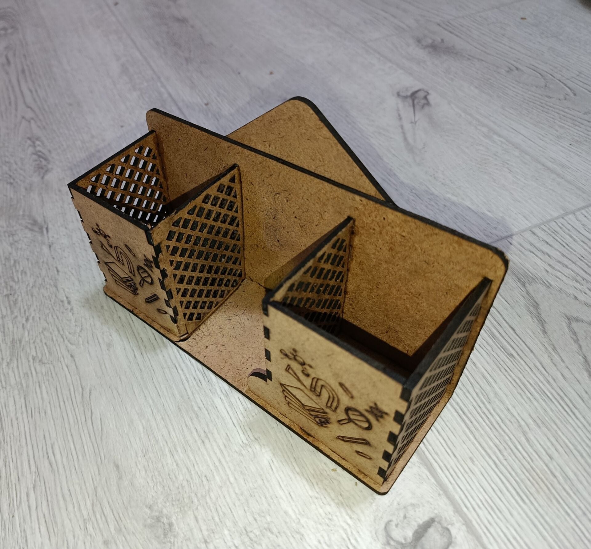 3mm MDF lazer kesim kalemlik isimlik, üzerine ister isminizi yazdırın ister şirket ismini yazarak hediye edin. Masaüstünüze yeni bir hava katacaktır.