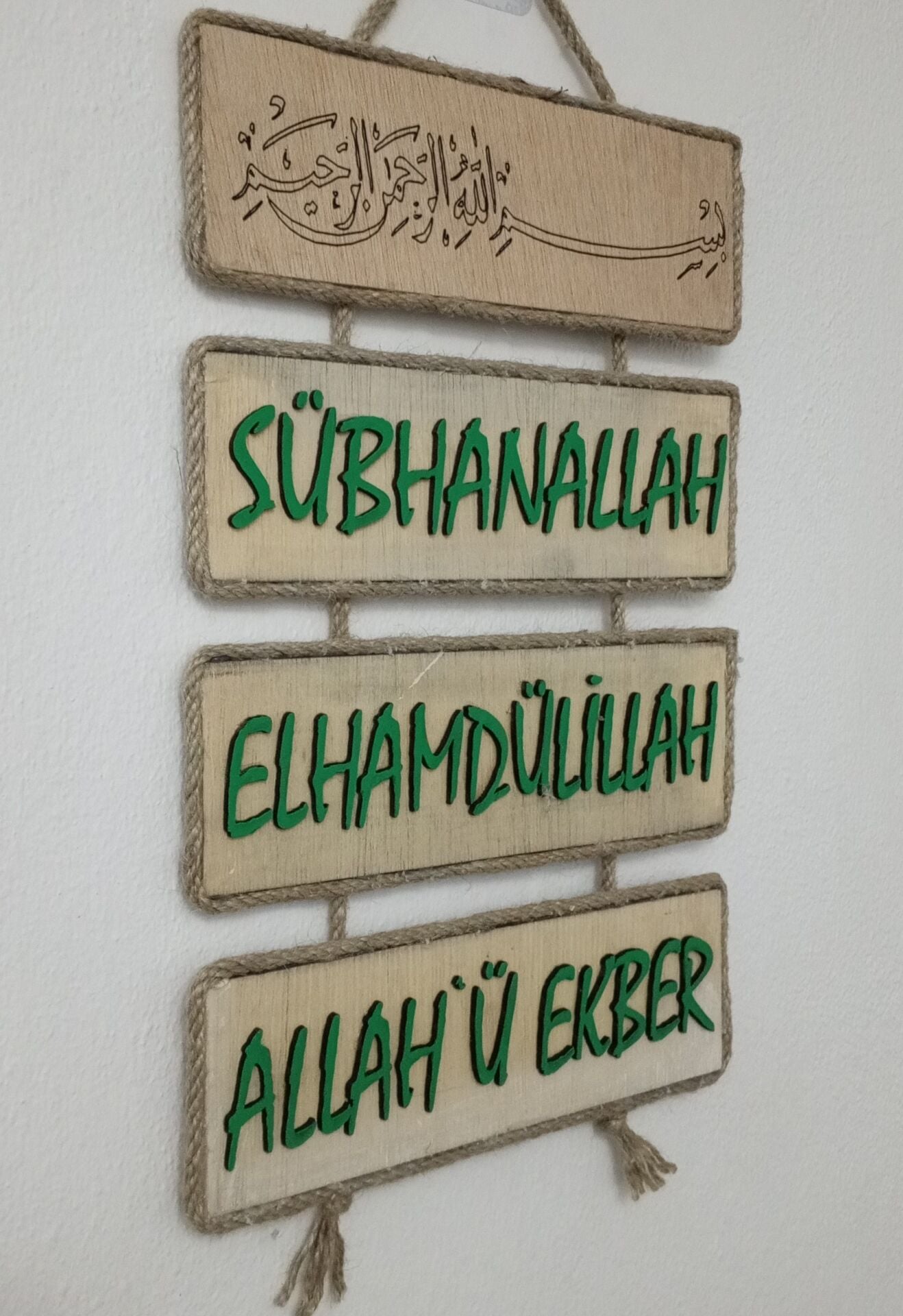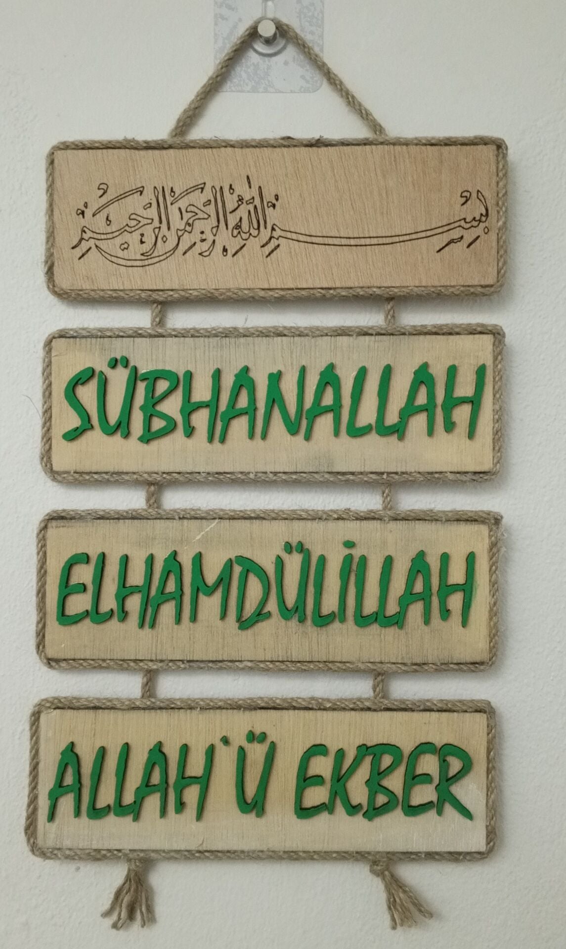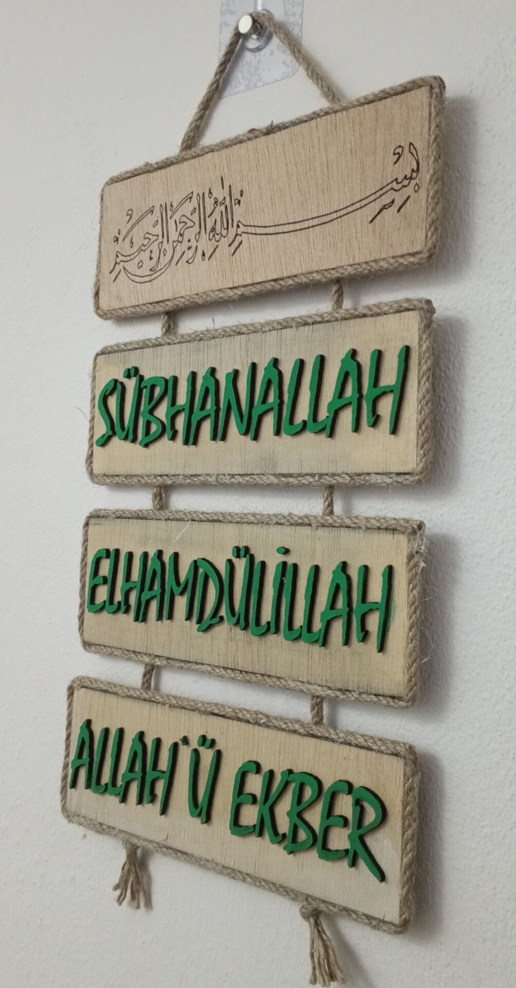 Bu 23cm x 35cm ölçülerindeki ahşap kabartma duvar panosu, estetik tasarımı ve dikkat çekici yazılarıyla evinizin dekorunu tamamlayacak. Besmele ve tesbihat yazılarıyla iç huzuru ve dinginliği simgelerken, zarif ahşap kabartma detayları da şıklığı ön plana çıkarıyor. Duvarınızda hem manevi bir atmosfer yaratacak hem de göz alıcı bir dekorasyon unsuru olacak.