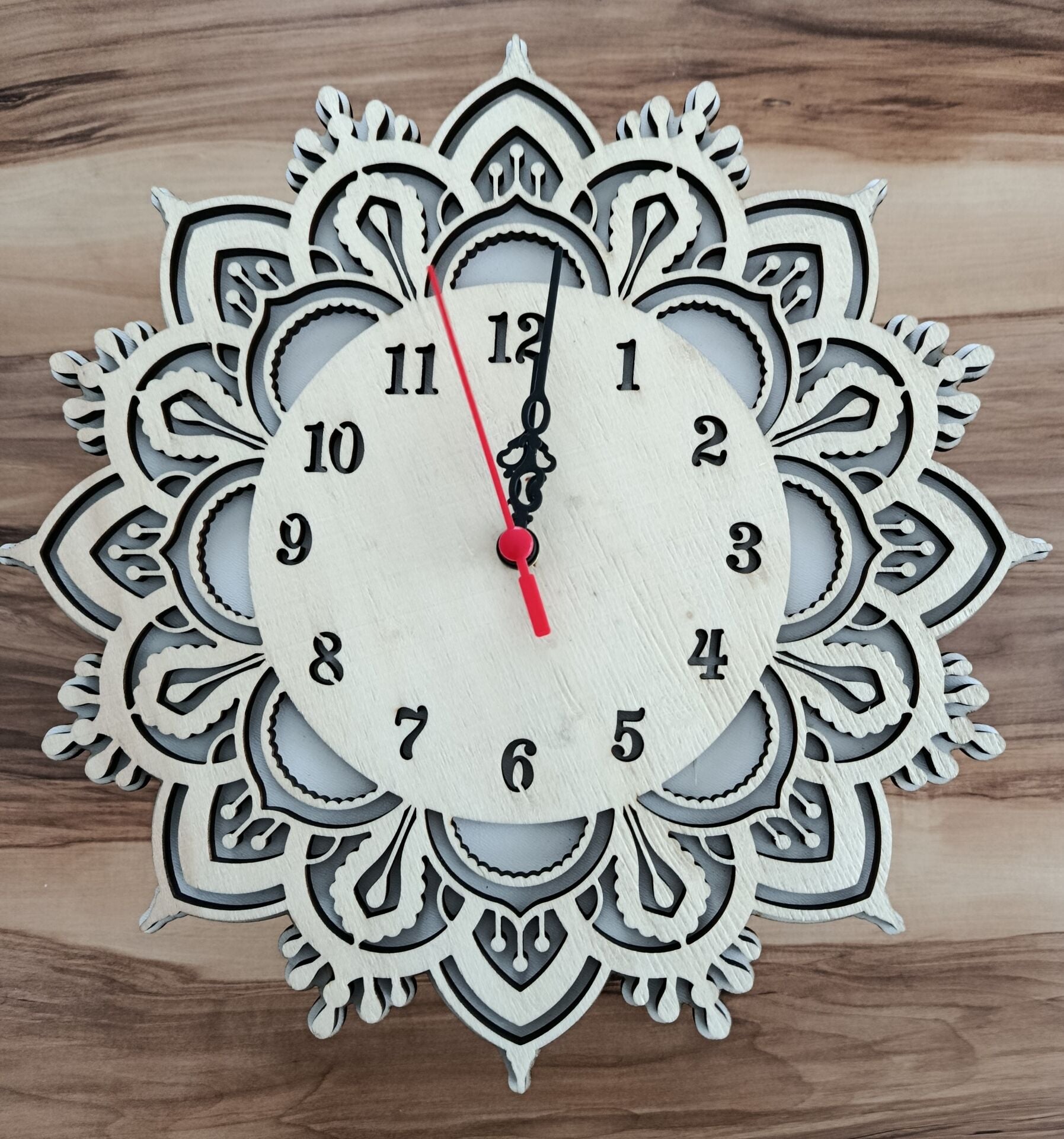 Ahşaptan üretilmiş bu şık duvar saati, doğal dokusuyla evinize sıcaklık katıyor. Kişiselleştirilebilir lazer kesim ile isminizi veya özel bir mesajı ekleyebilir, eşsiz bir dekorasyon parçasına dönüştürebilirsiniz. Hem şık hem fonksiyonel bu saat, her ortamda dikkat çeker.