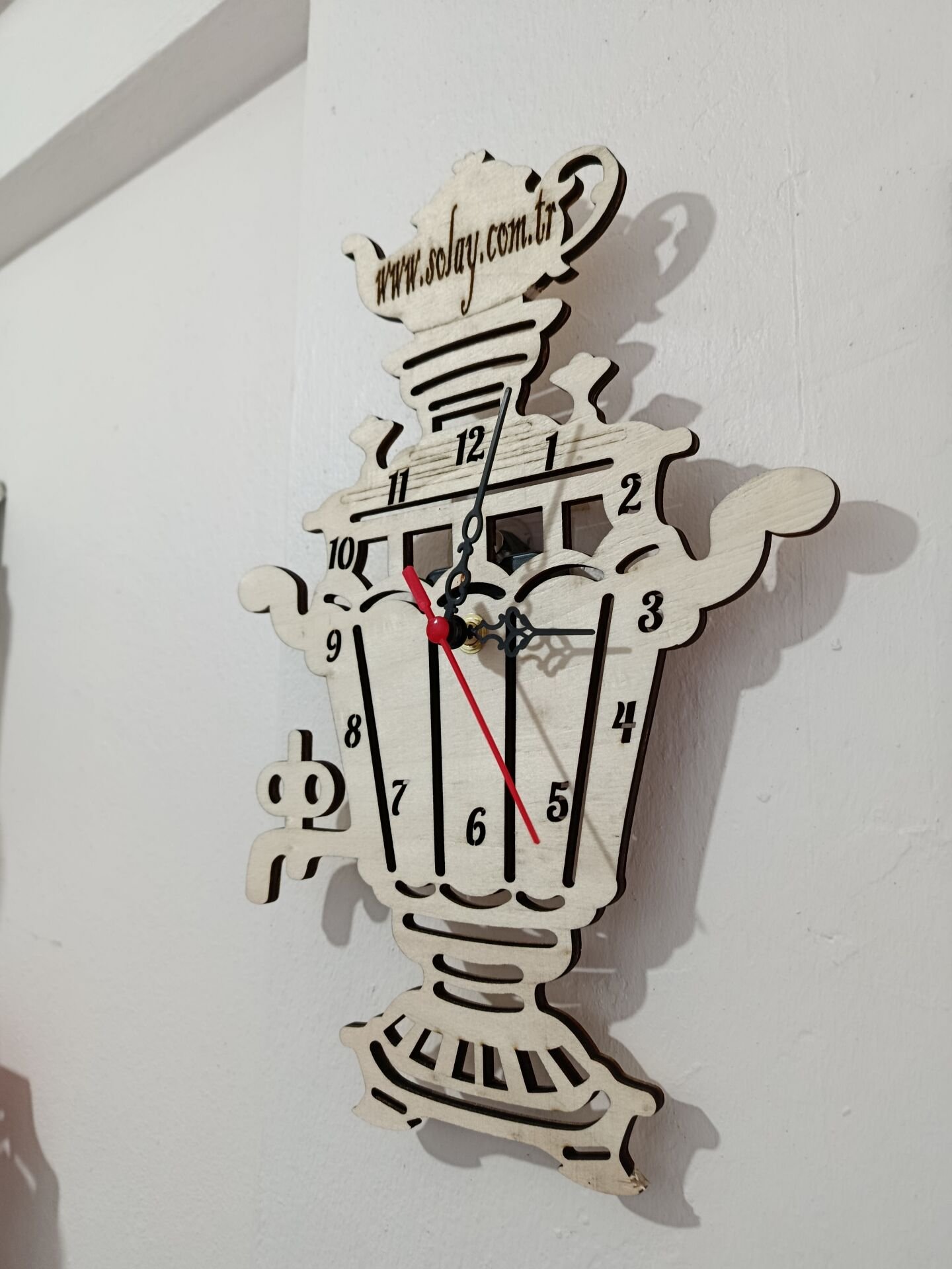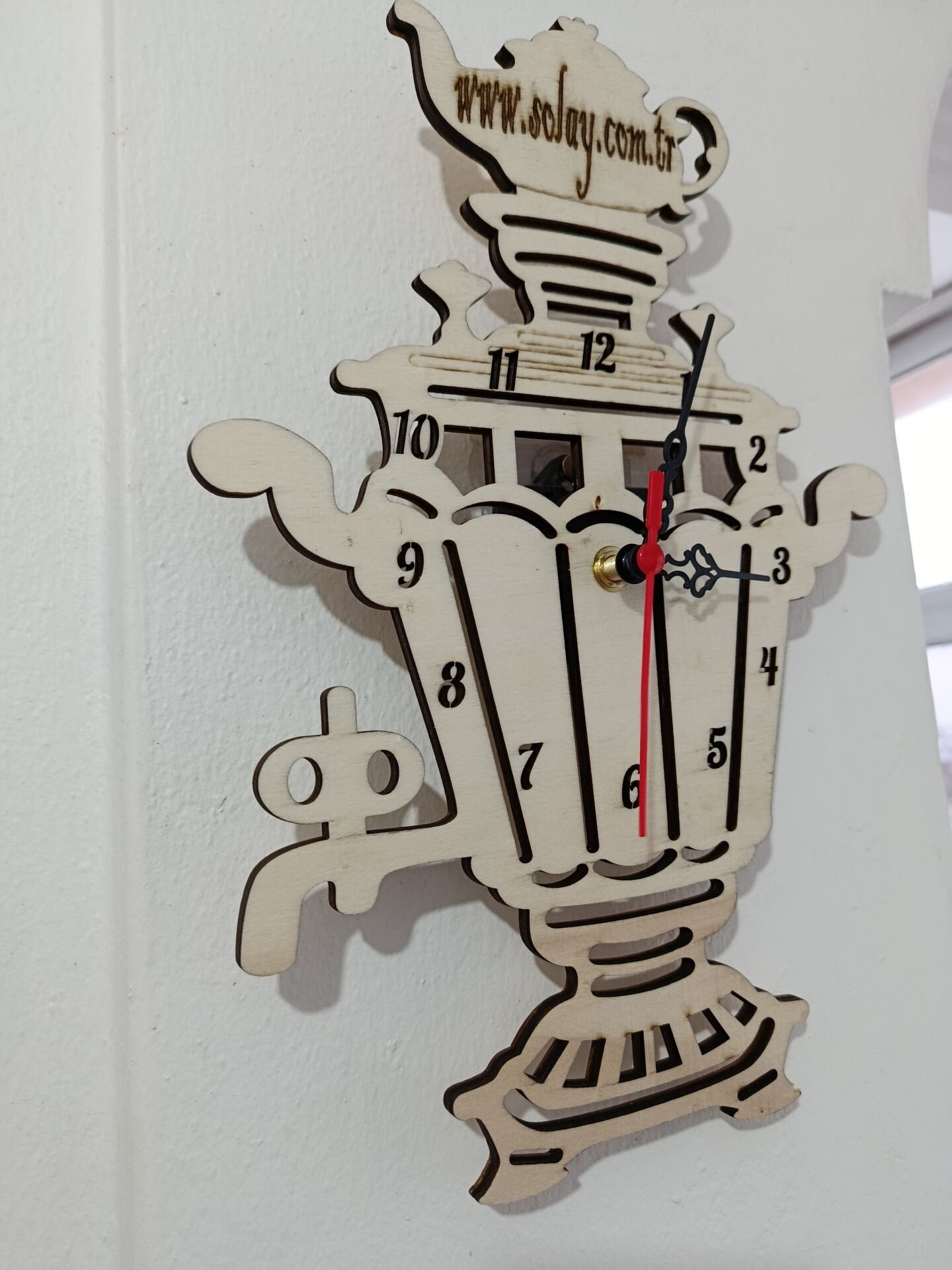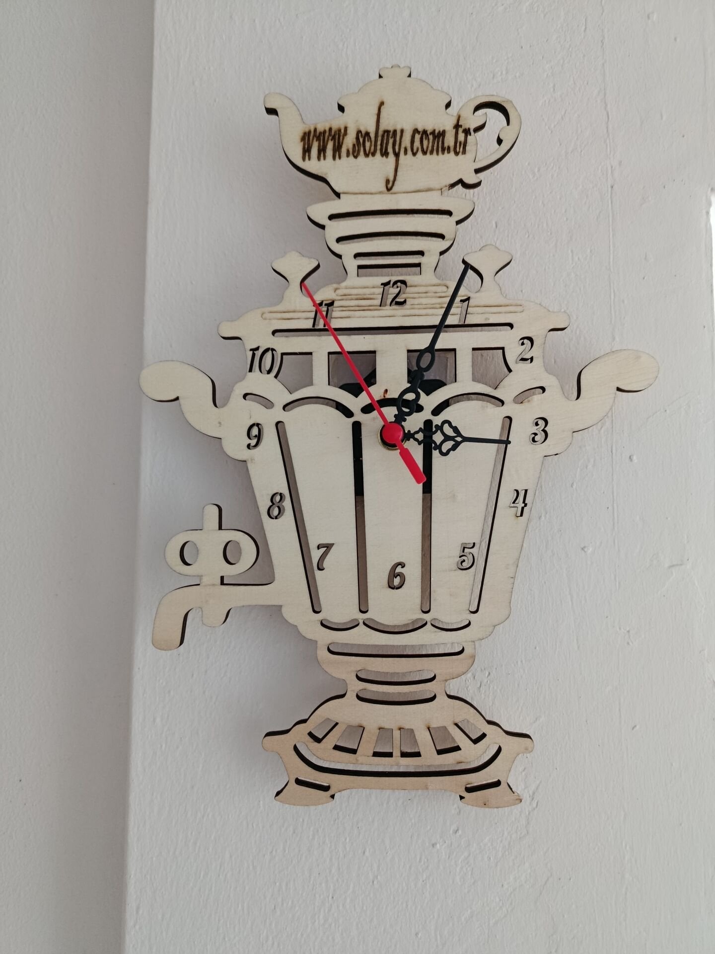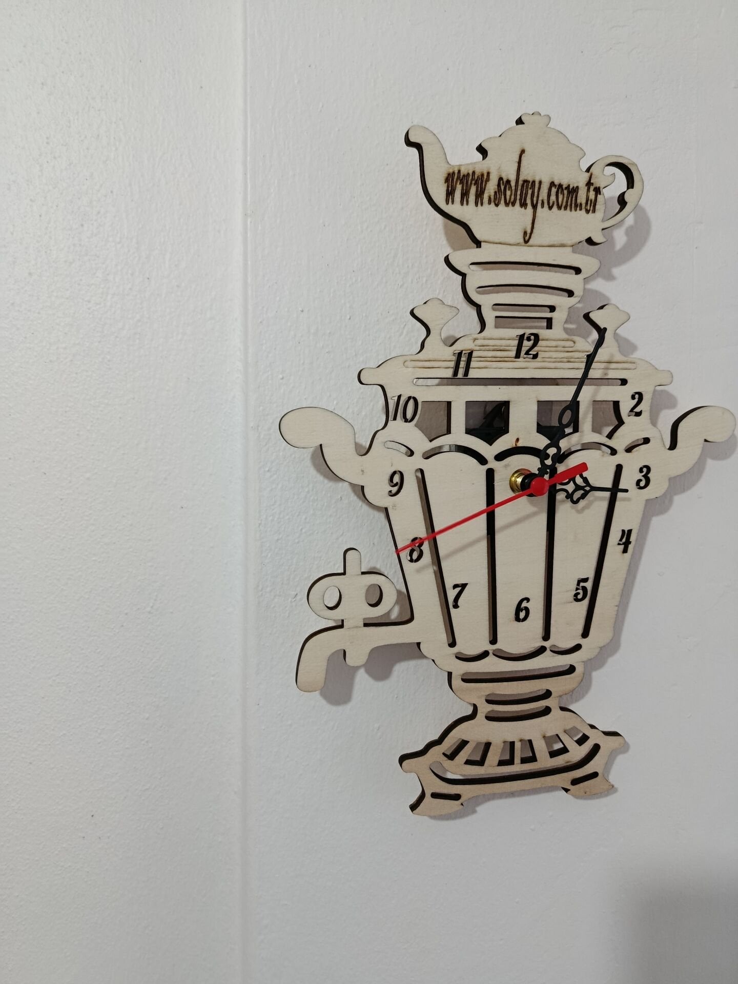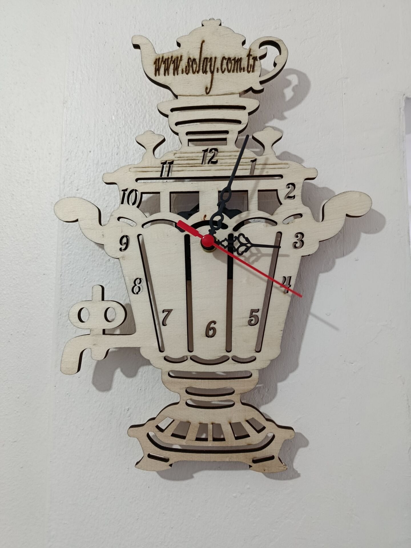 Semaver figürüyle süslenen kişiye özel tasarlanan ahşap duvar saati, mutfağınıza sıcaklık ve şıklık katar. Lazer kesim detayları sayesinde zamansız ve estetik bir görünüm sunar. Hem dekoratif hem işlevsel olan bu saat, keyifli mutfak anlarınızı tamamlar. Kaliteli malzemesi uzun ömürlü kullanım sağlar