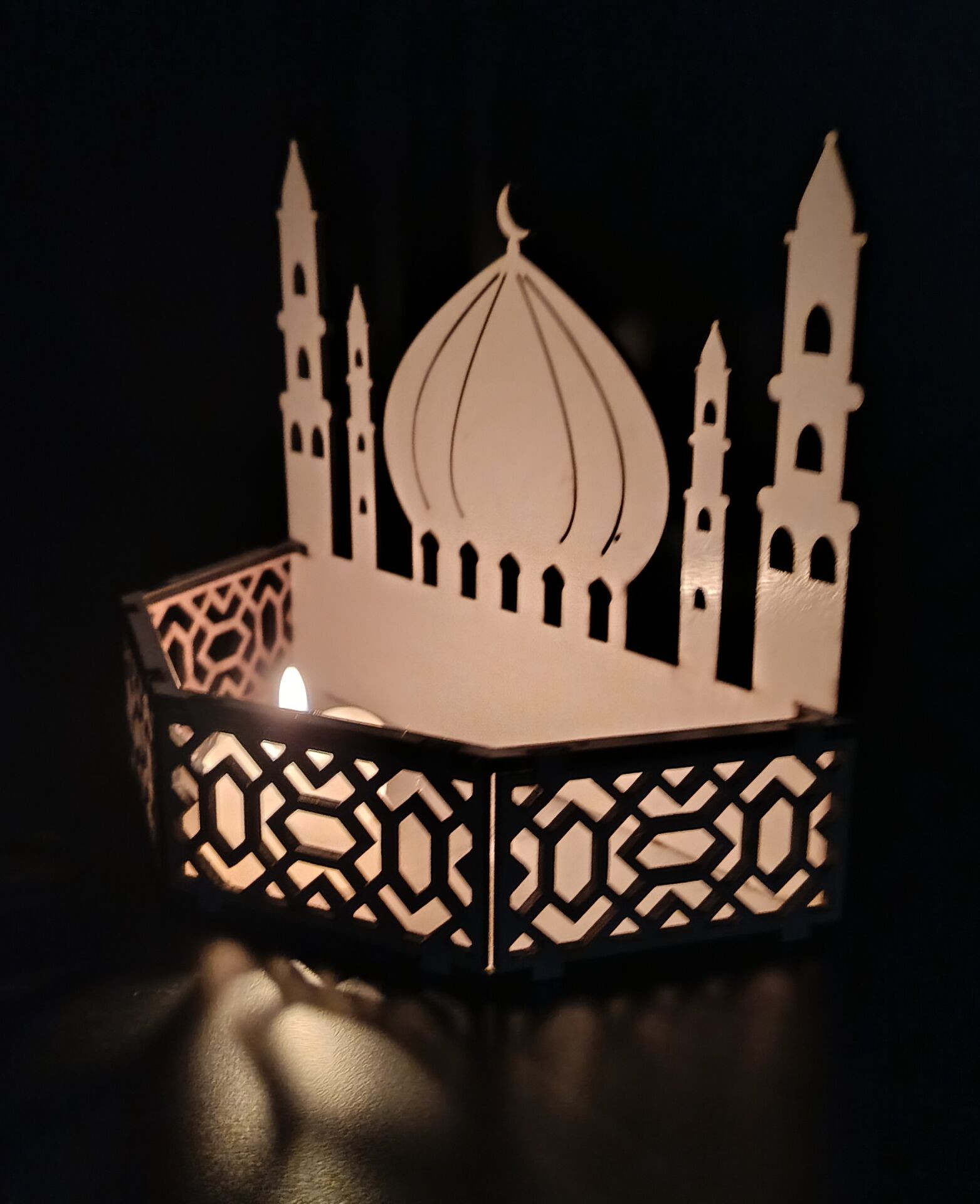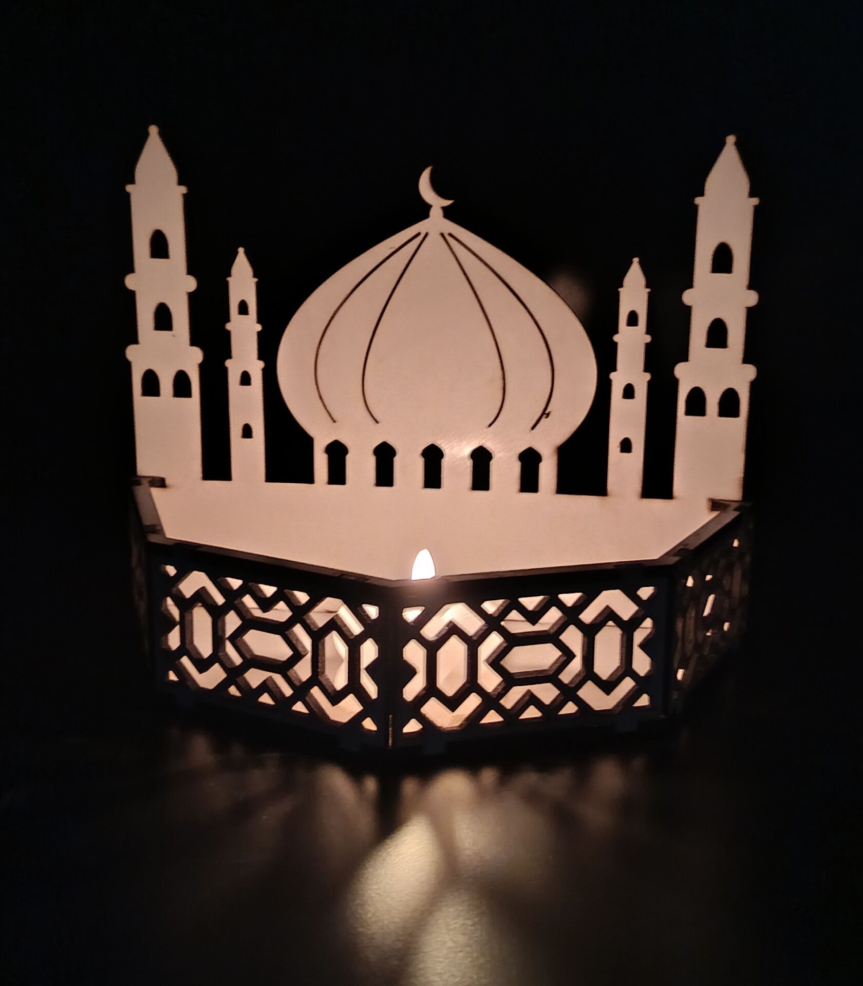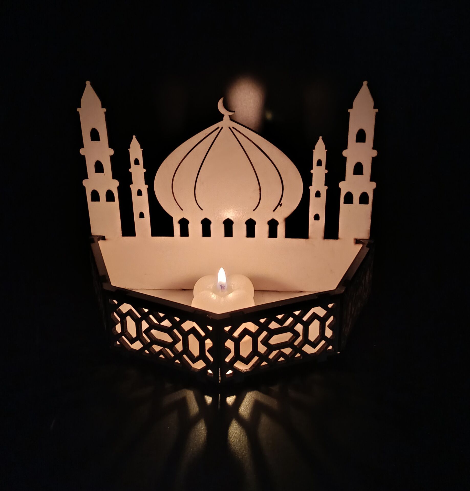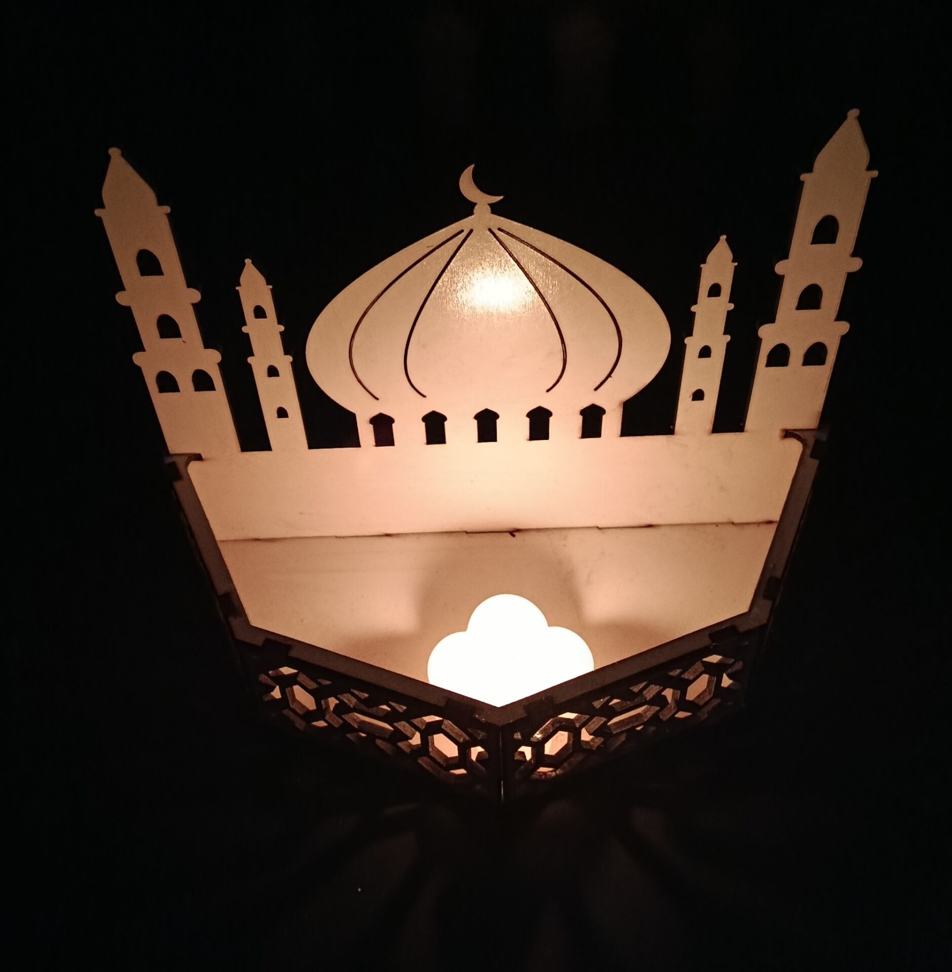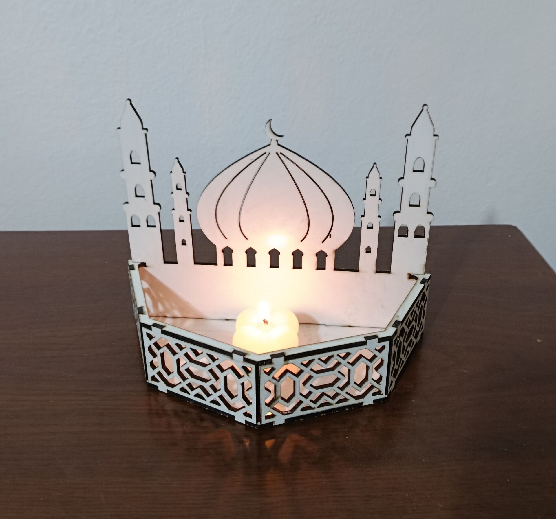 ahşap lazer kesim cami figirlü masa süsü mumluk. 3mm mdf
