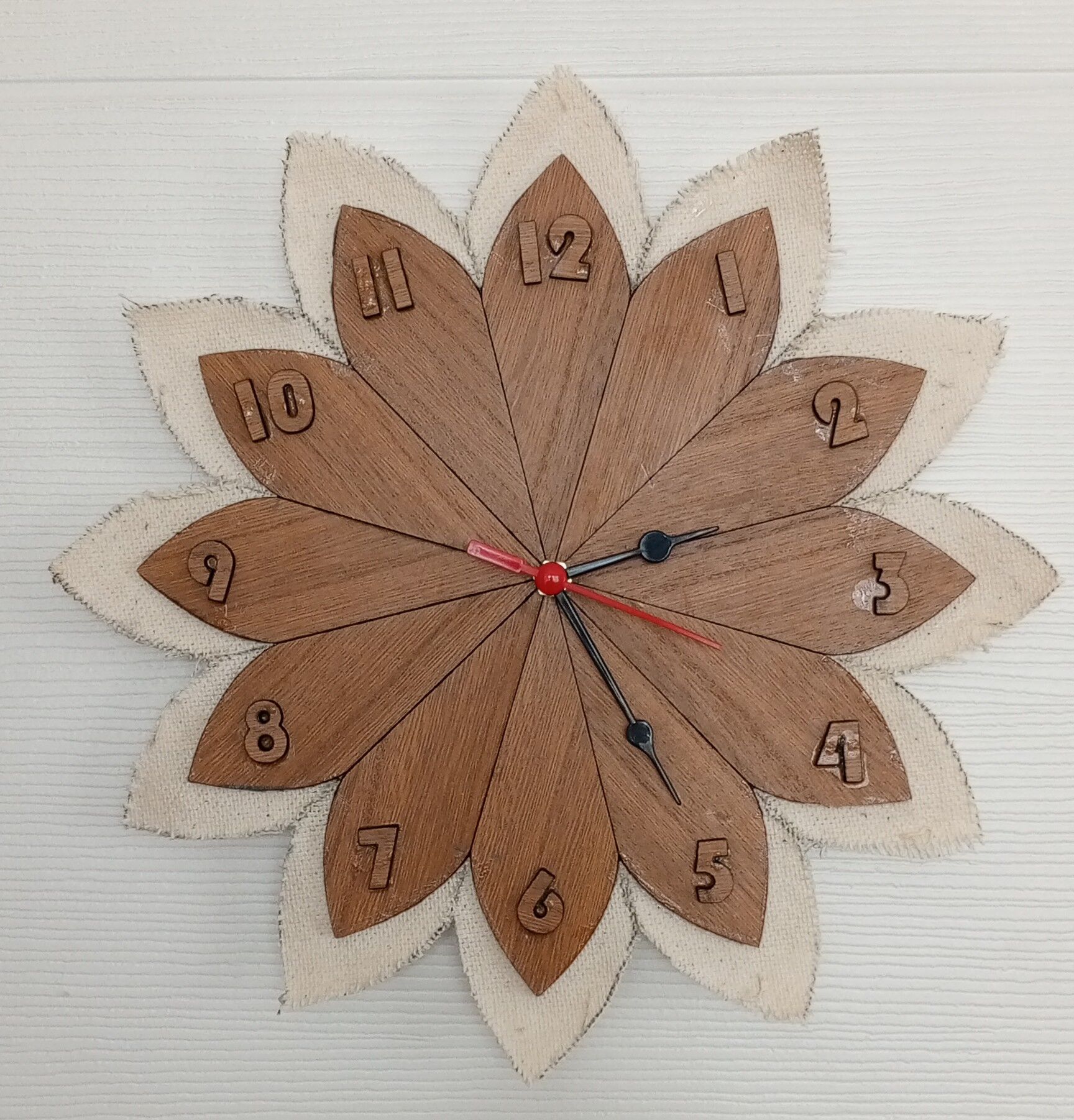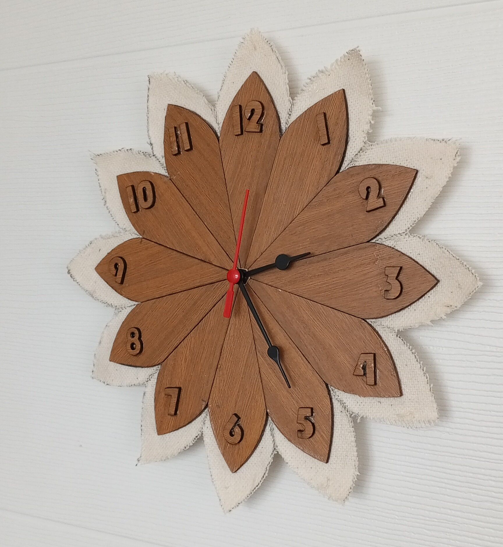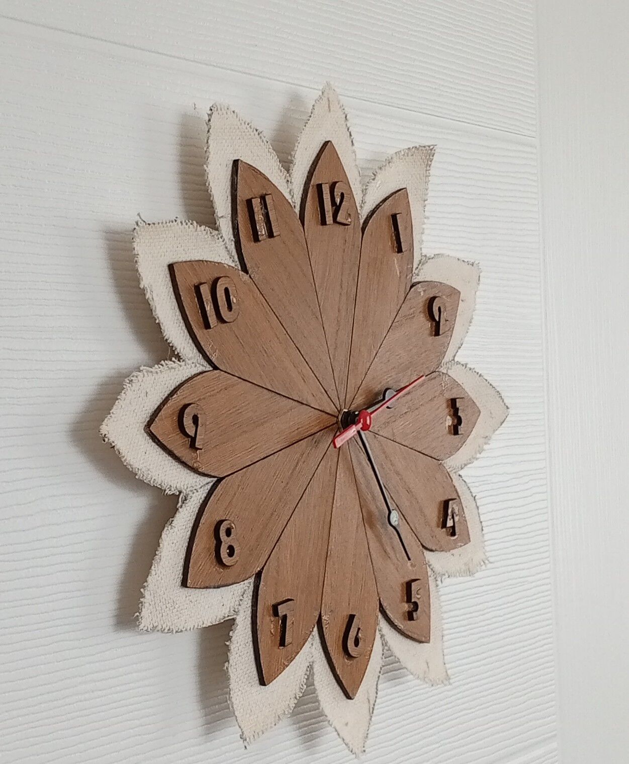 29 cm ahşap ve kumaş birleşimi dekoratif duvar saatiBu muhteşem duvar saati, doğal ahşap ve kaliteli keten kumaş ile tasarlanmıştır. Rustik tarzı ve zarif dokusuyla her türlü dekorasyona uyum sağlar. Saat mekanizması sessiz olup, evin herhangi bir odasında huzurlu bir atmosfer yaratır.