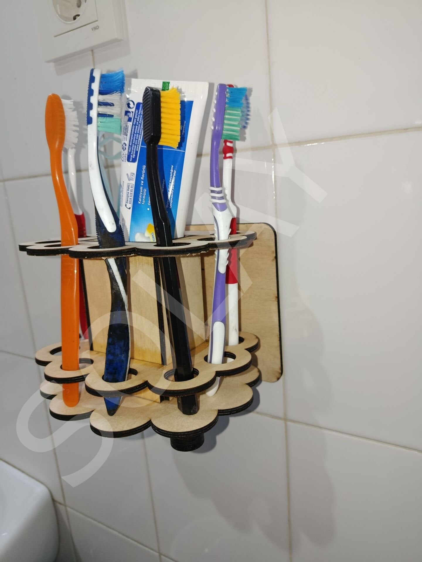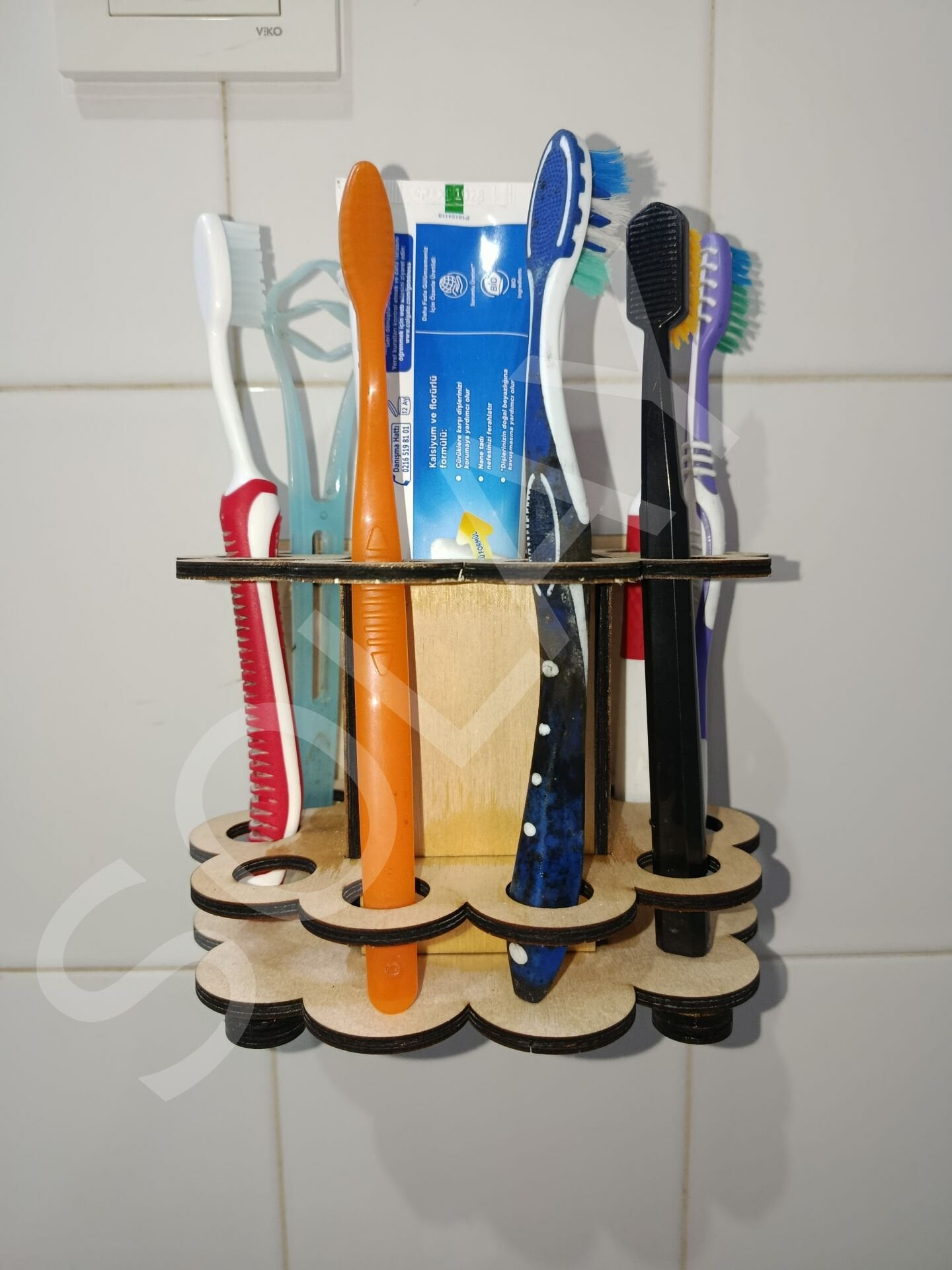 4mm ahşap diş fırçalığı ve macunluk, ister sade ister boyalı olarak kullanabilirsiniz. 8adet fırça ve 1 adet macun koyma yeri ile ailenizin ihtiyacını karşılayacaktır.