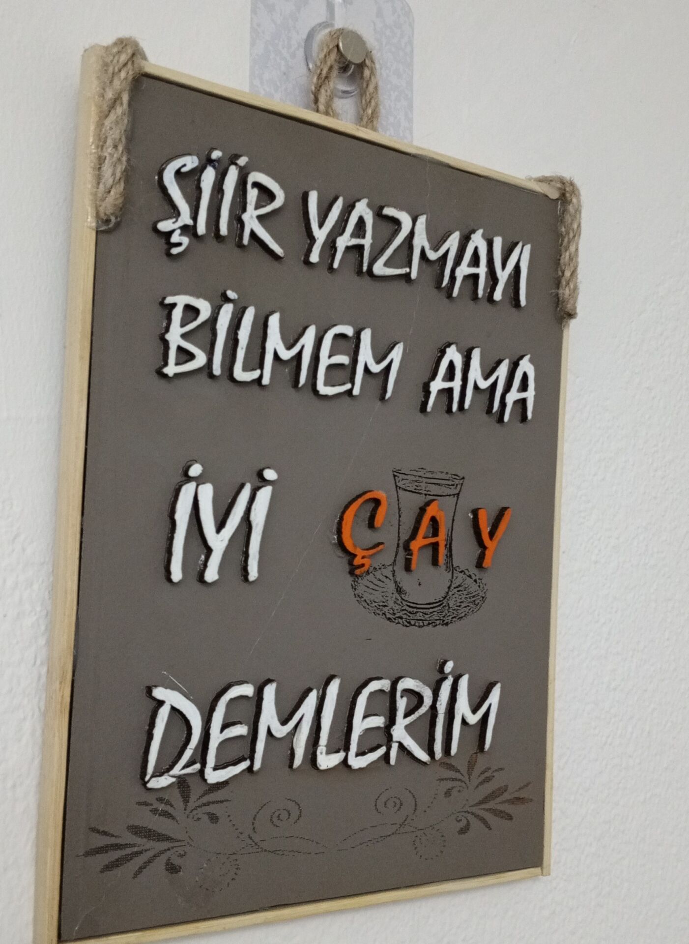 21cm x 16cm ölçülerinde. Ahşap üzerine yine ahşap harflerle yazılmış, mutfak ve kahve köşelerini süsleyecek bir tasarım.