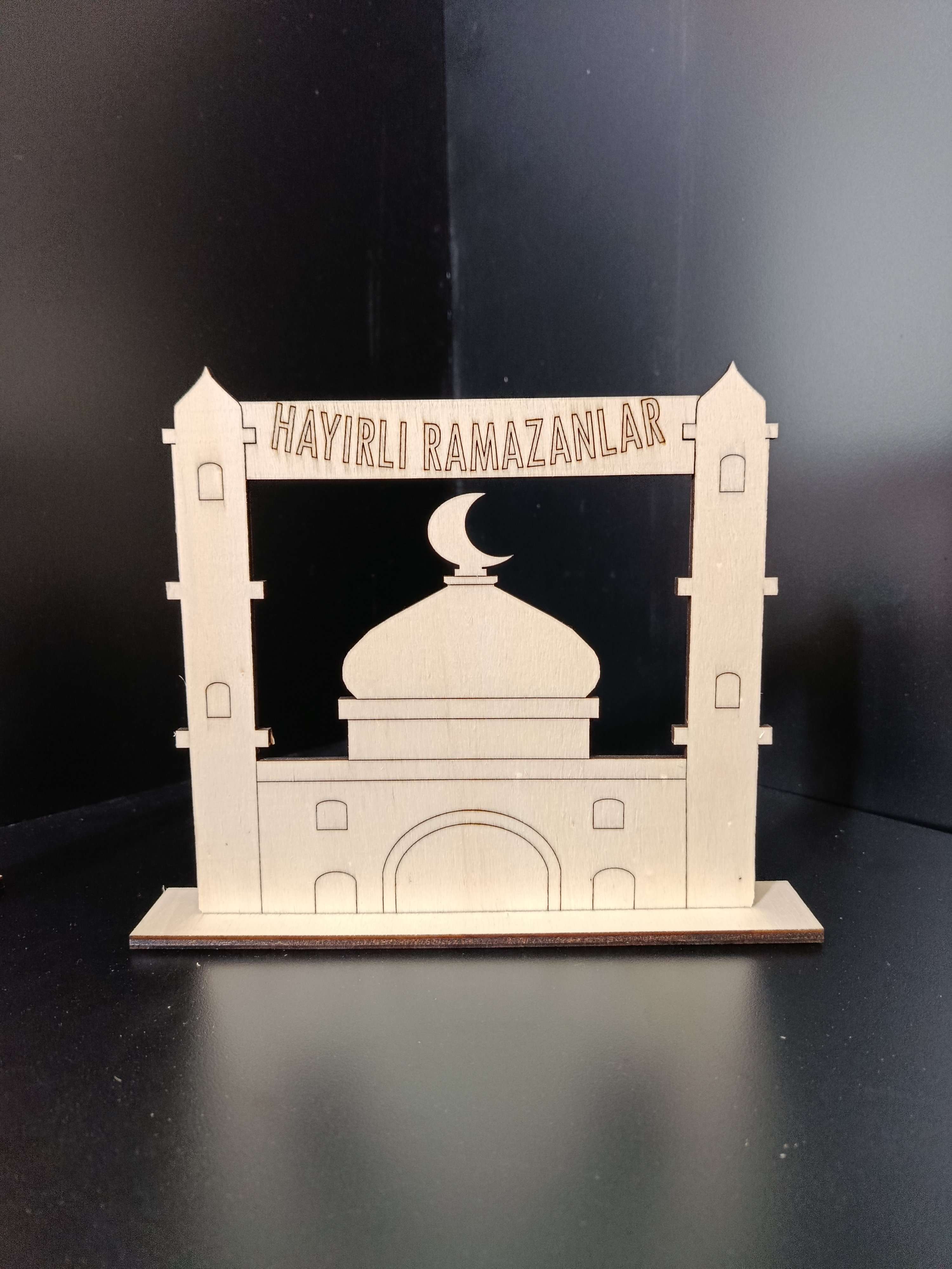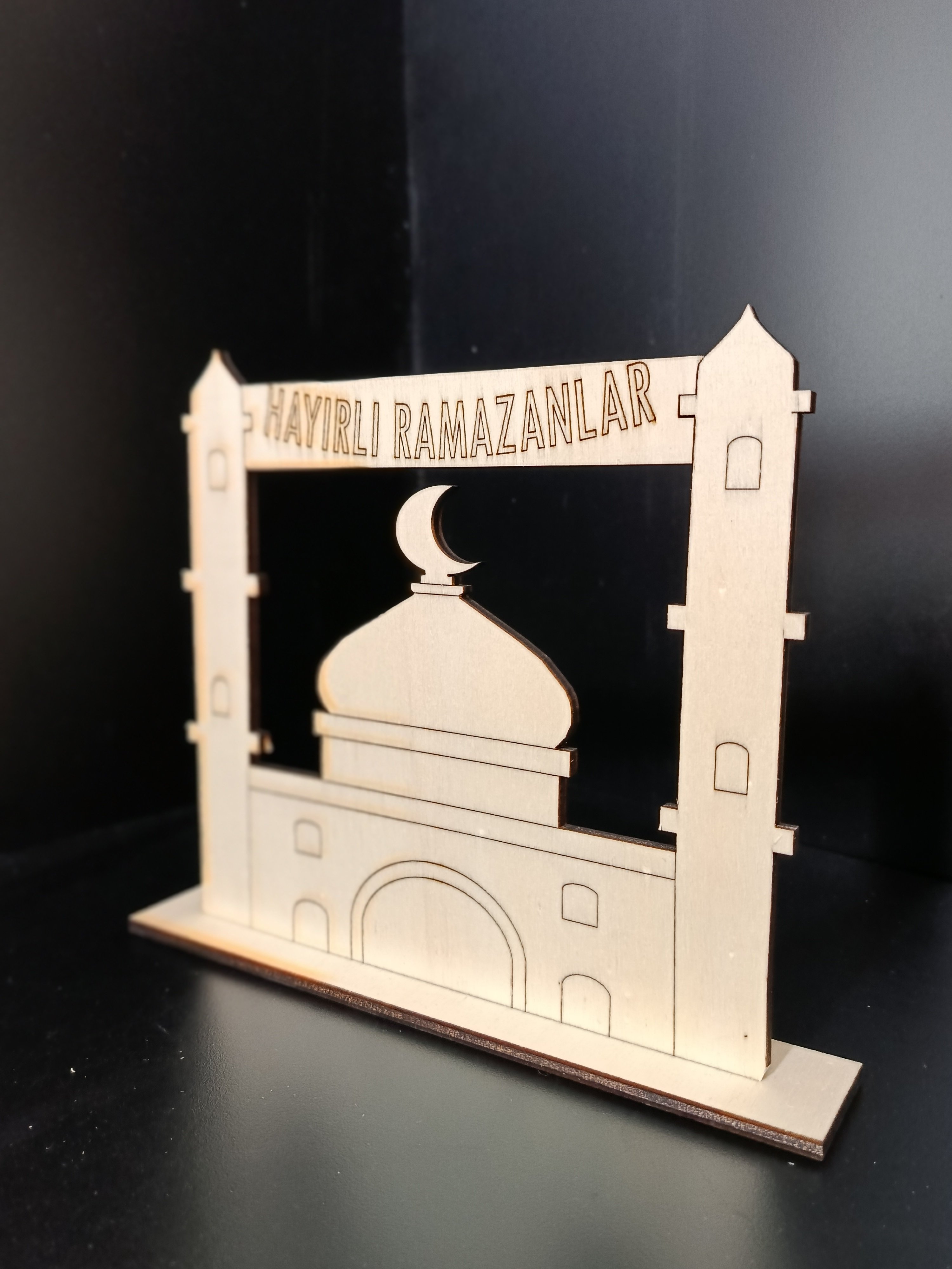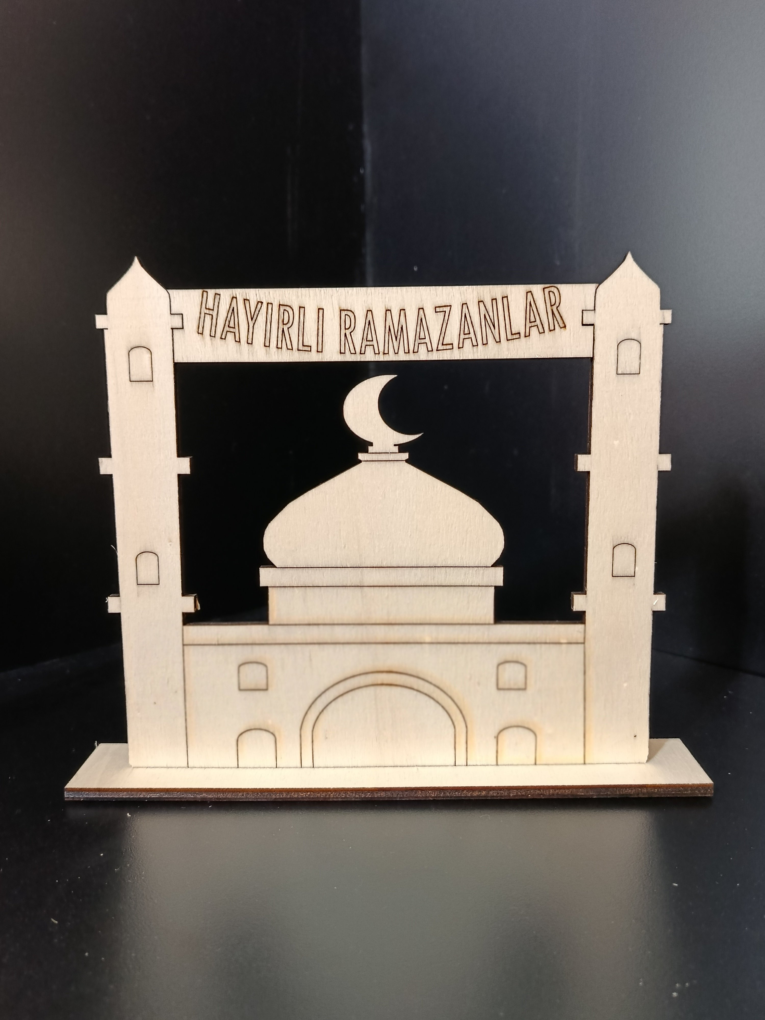 4mm ahşap boyanabilir hayırlı ramazanlar yazılı cami figürlü masa süsü, hediyelik