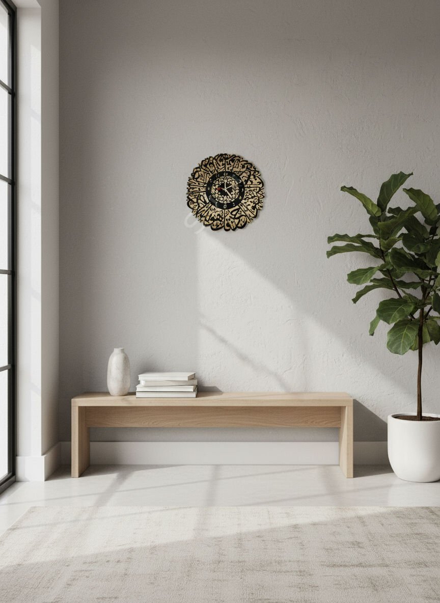 Yaşam alanlarınıza manevi bir huzur ve estetik bir dokunuş katmak için tasarlanan İhlas Suresi Ahşap Duvar Saati, geleneksel hat sanatı ile modern lazer kesim teknolojisini birleştiriyor.