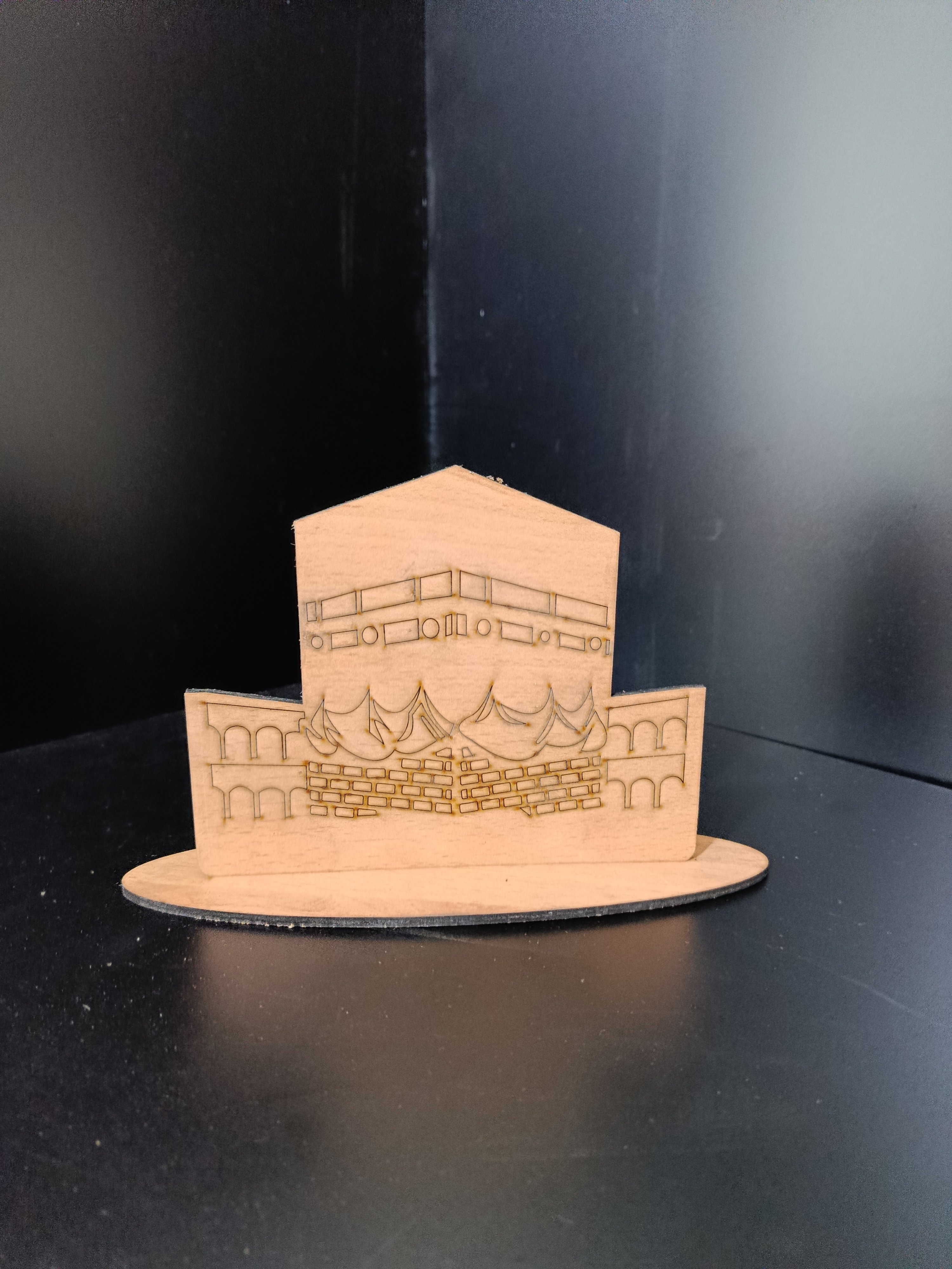 kabe ve cami figürlü 3 mm MDF masasüsü hediyelik. İkisi bir arada