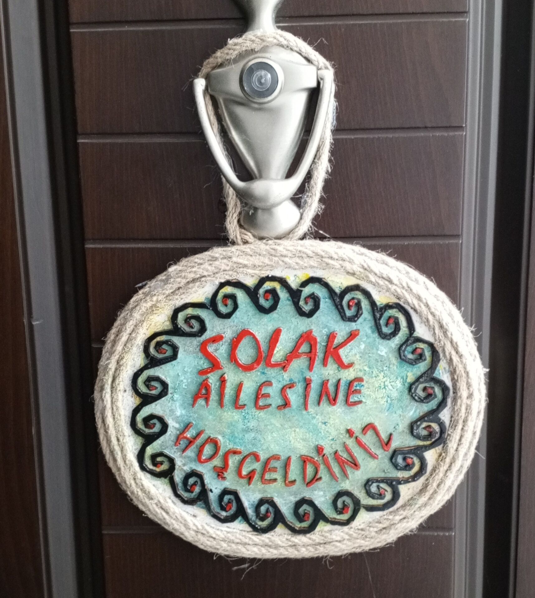 Ahşap üzerine lazer yakma hoşgeldiniz yazılı kapı süsü. 8mm mdf. 18cmx22cm . Kenarı jüt ipi ile süslü. Kişiye özel yapılır