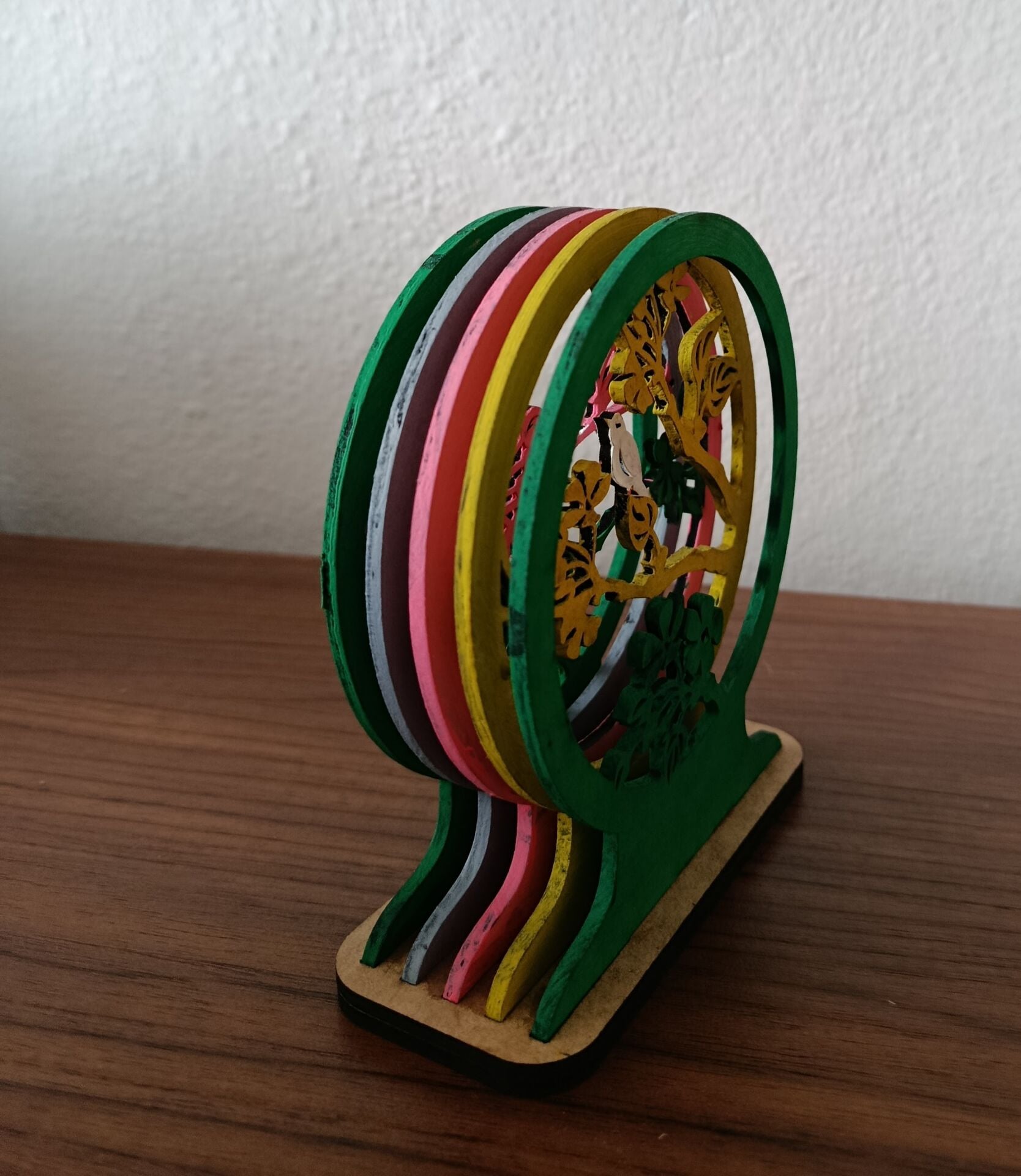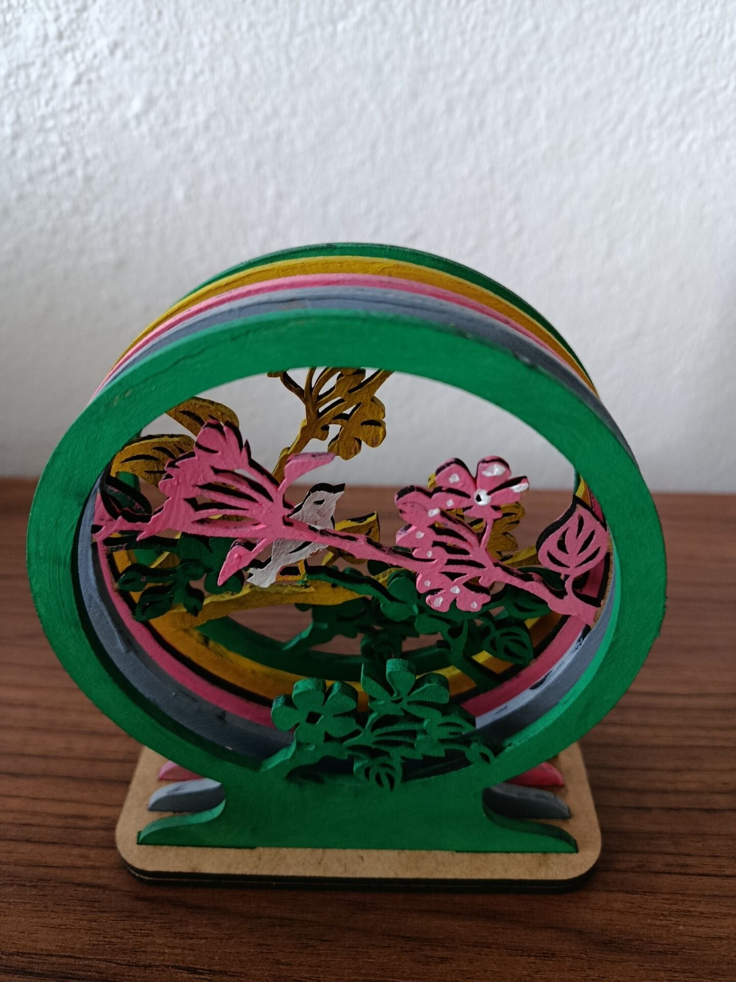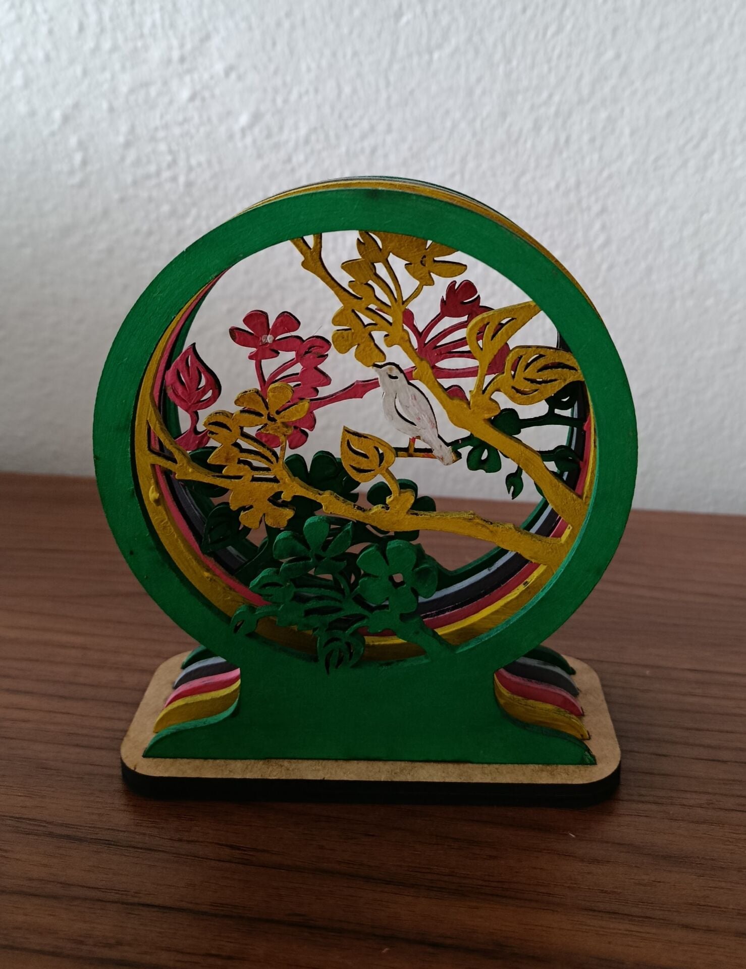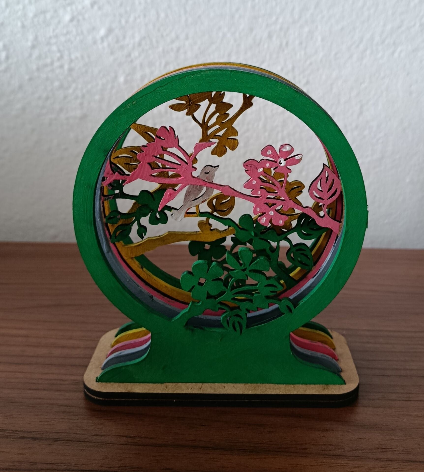 Mini boy 3d ahşap 3mm mdf pano, 5 katmanlı ağaç ve kuş figürlü masaüstü aksesuar. ölçüleri yükseklik 13cm genişlik 11cm