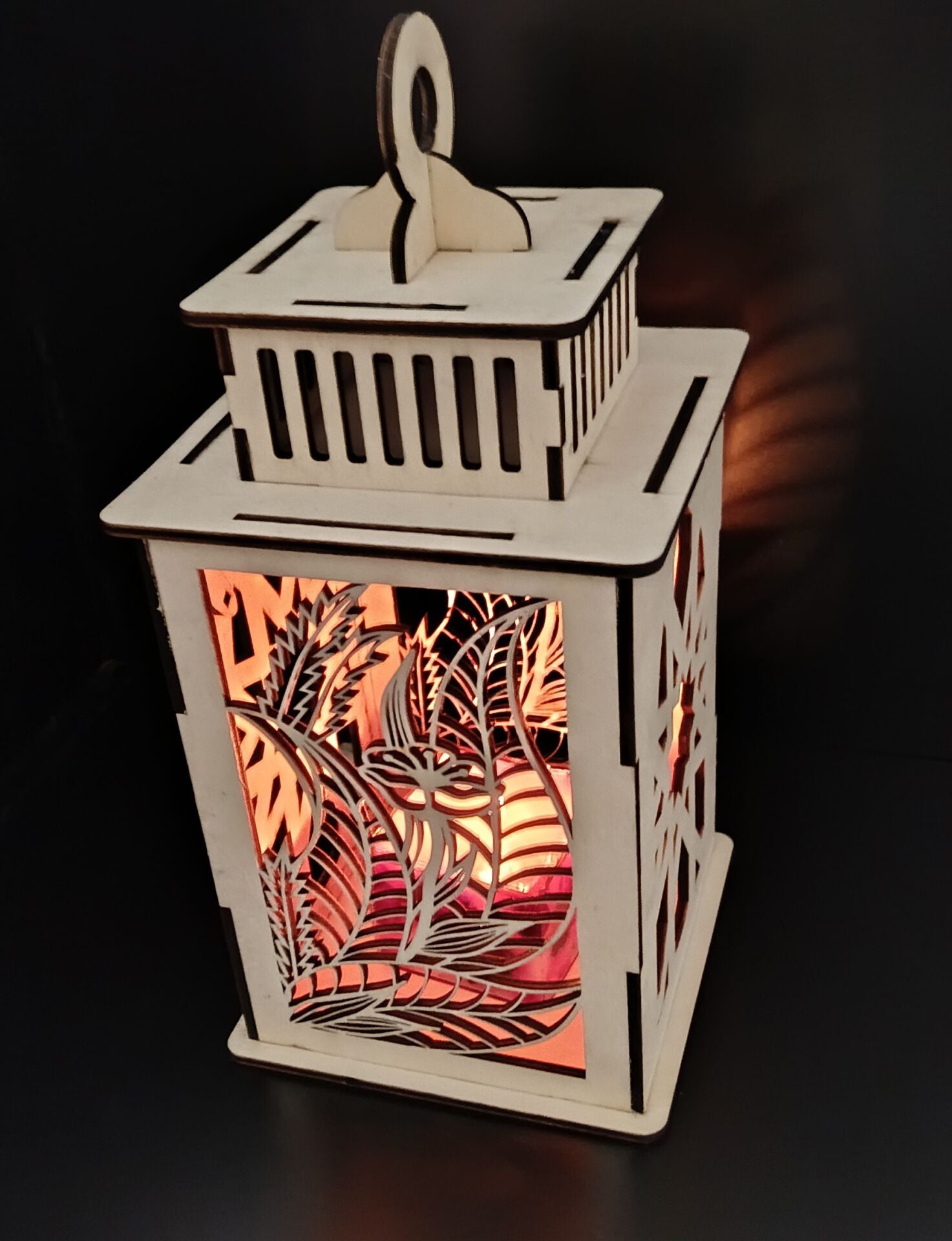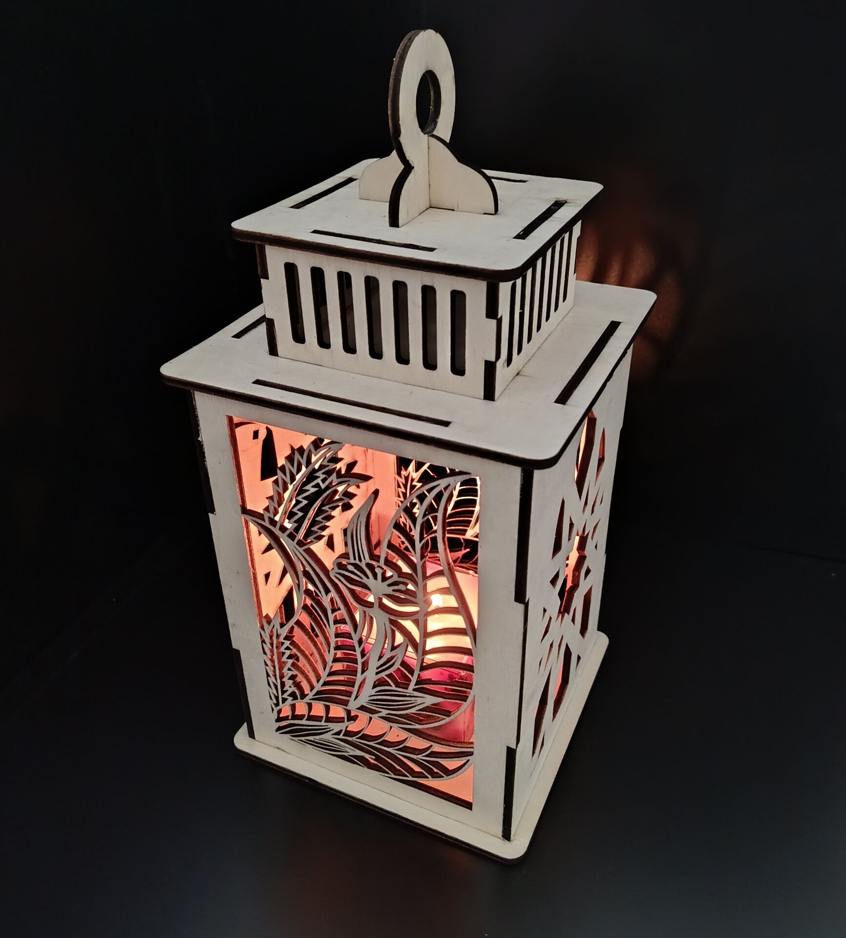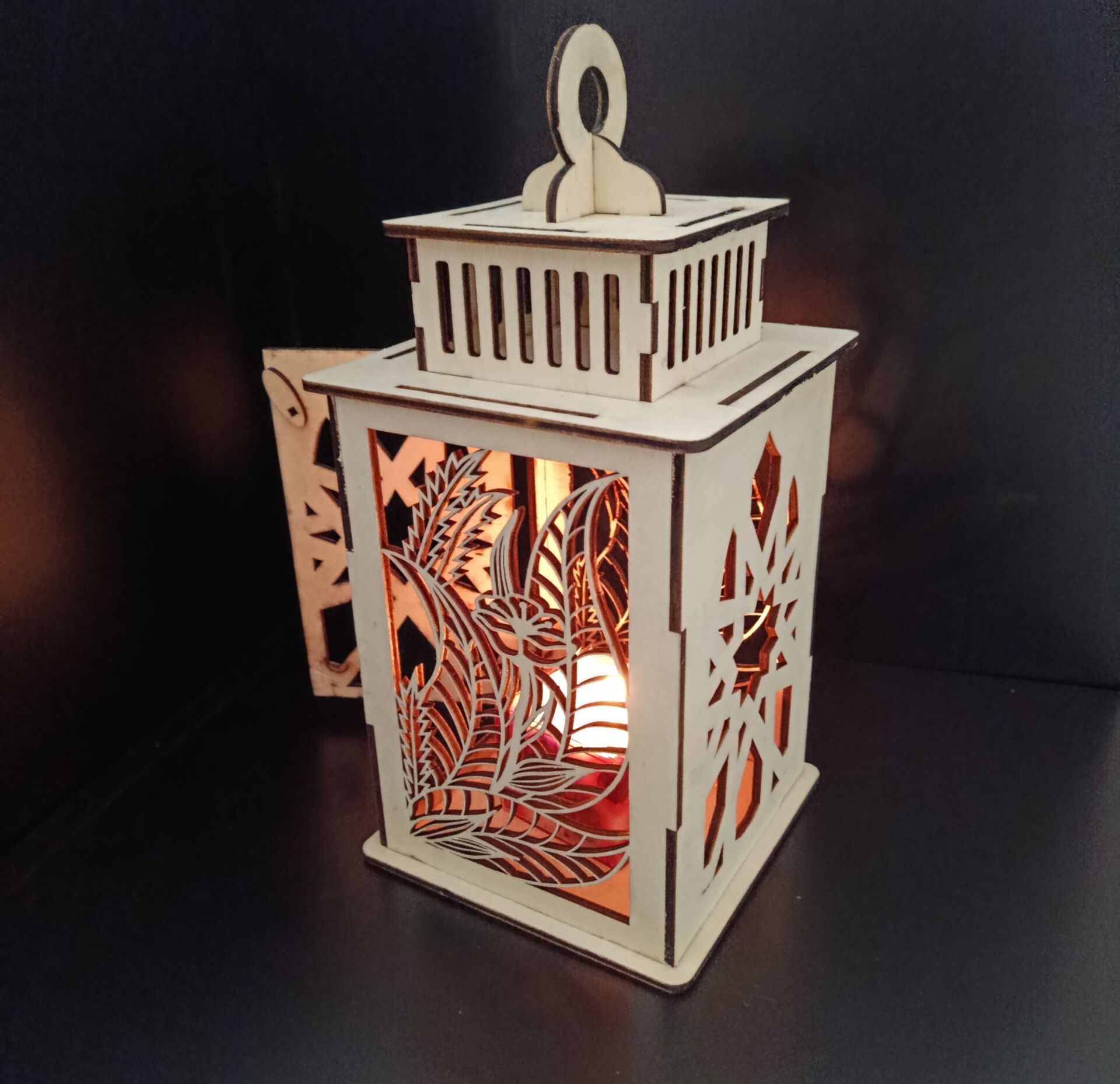4mm lazer kesim ahşap oymalı fener. Masaüstünde ve asmalı olarak tasarlanmış bu ürün loş bir ortam sağlamaktadır. Boyanabilir olması sayesinde istediğiniz renkte boyayabilirsiniz.