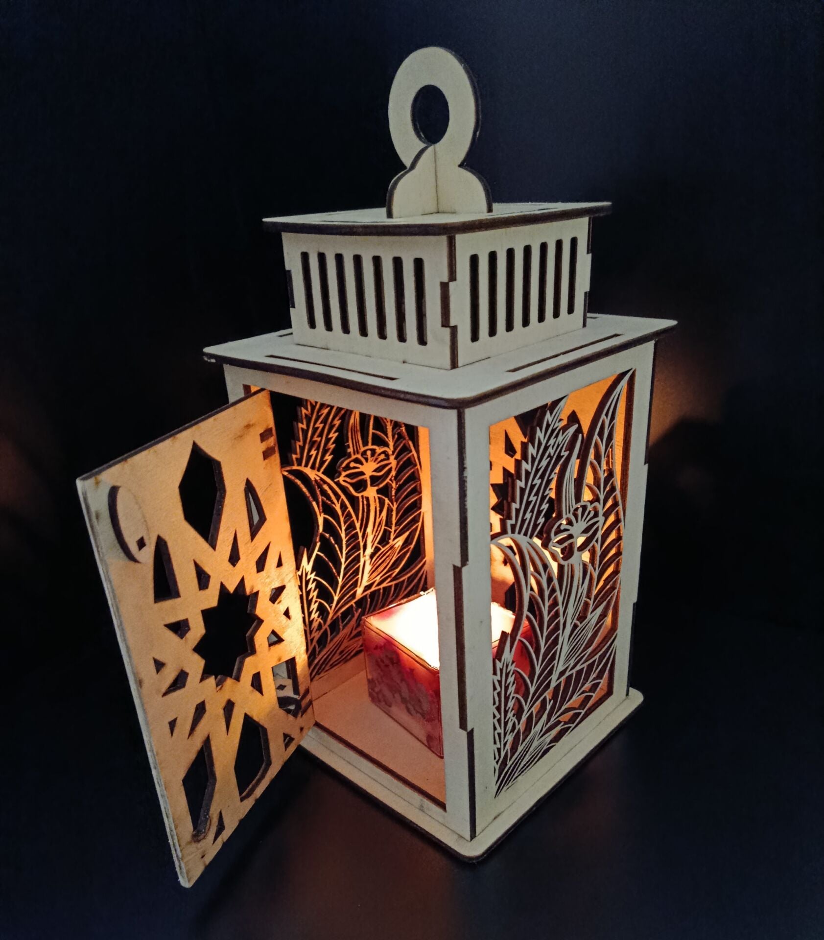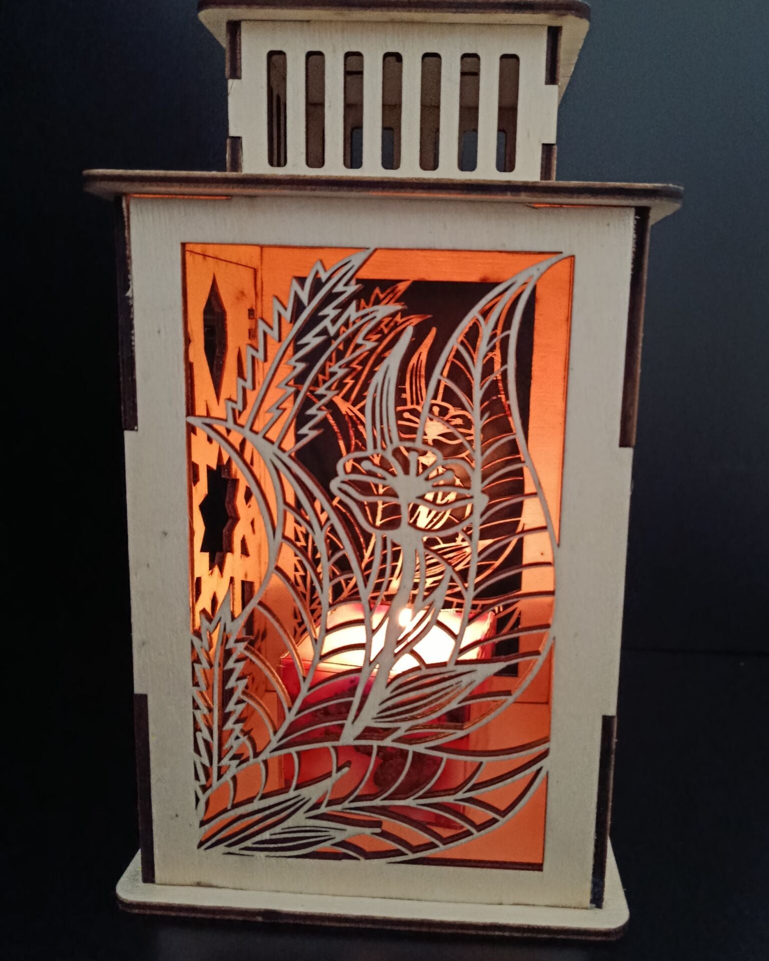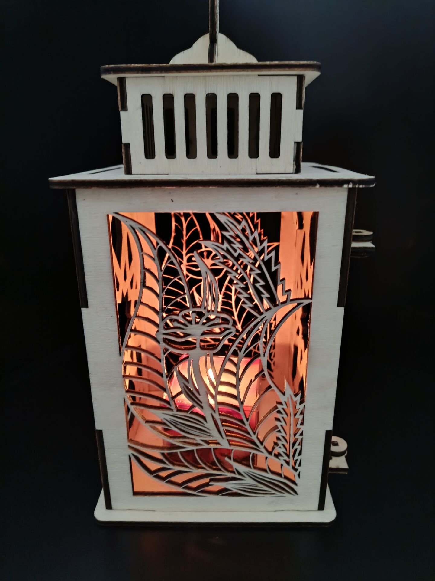 4mm lazer kesim ahşap oymalı fener. Masaüstünde ve asmalı olarak tasarlanmış bu ürün loş bir ortam sağlamaktadır. Boyanabilir olması sayesinde istediğiniz renkte boyayabilirsiniz.