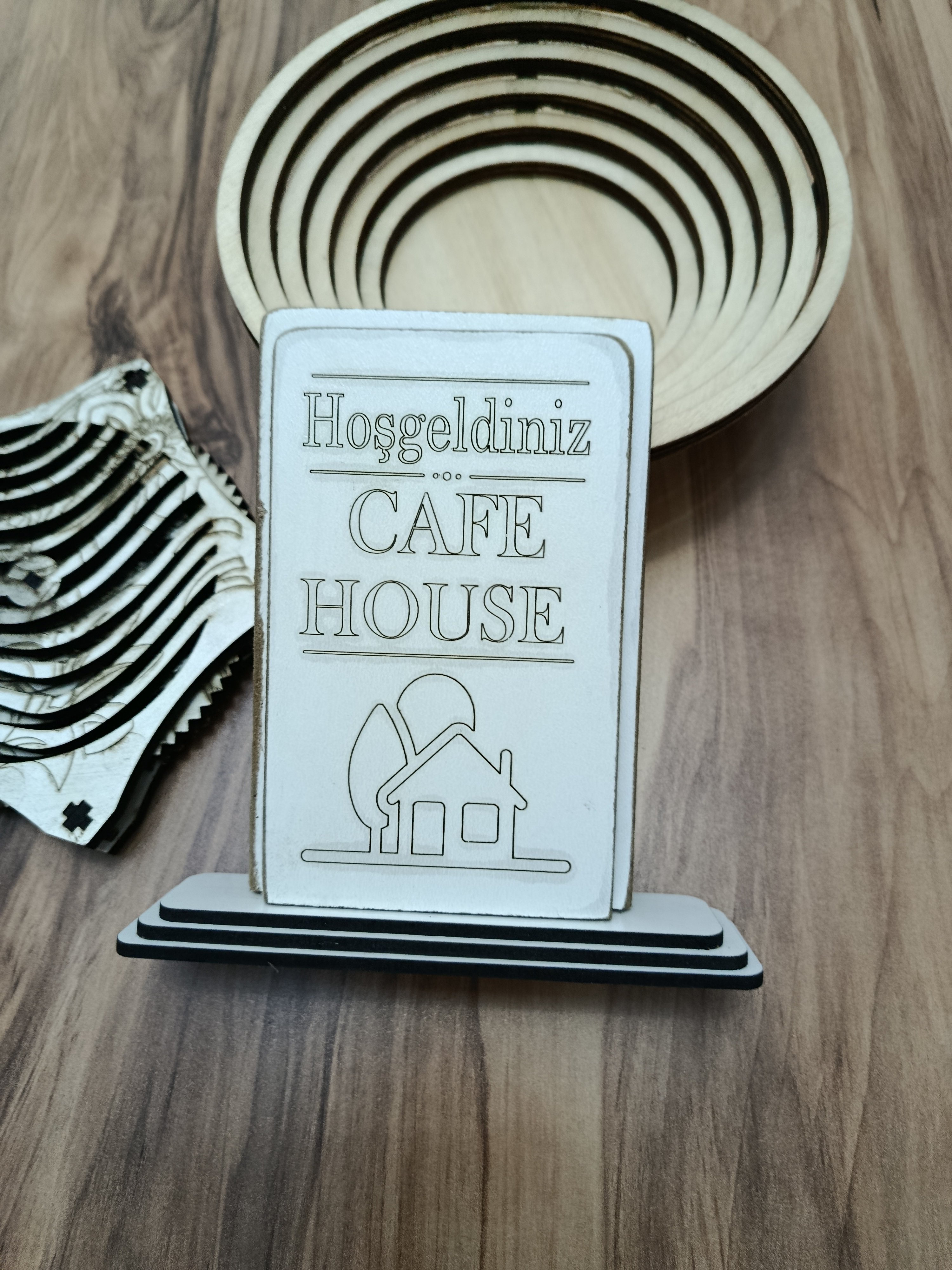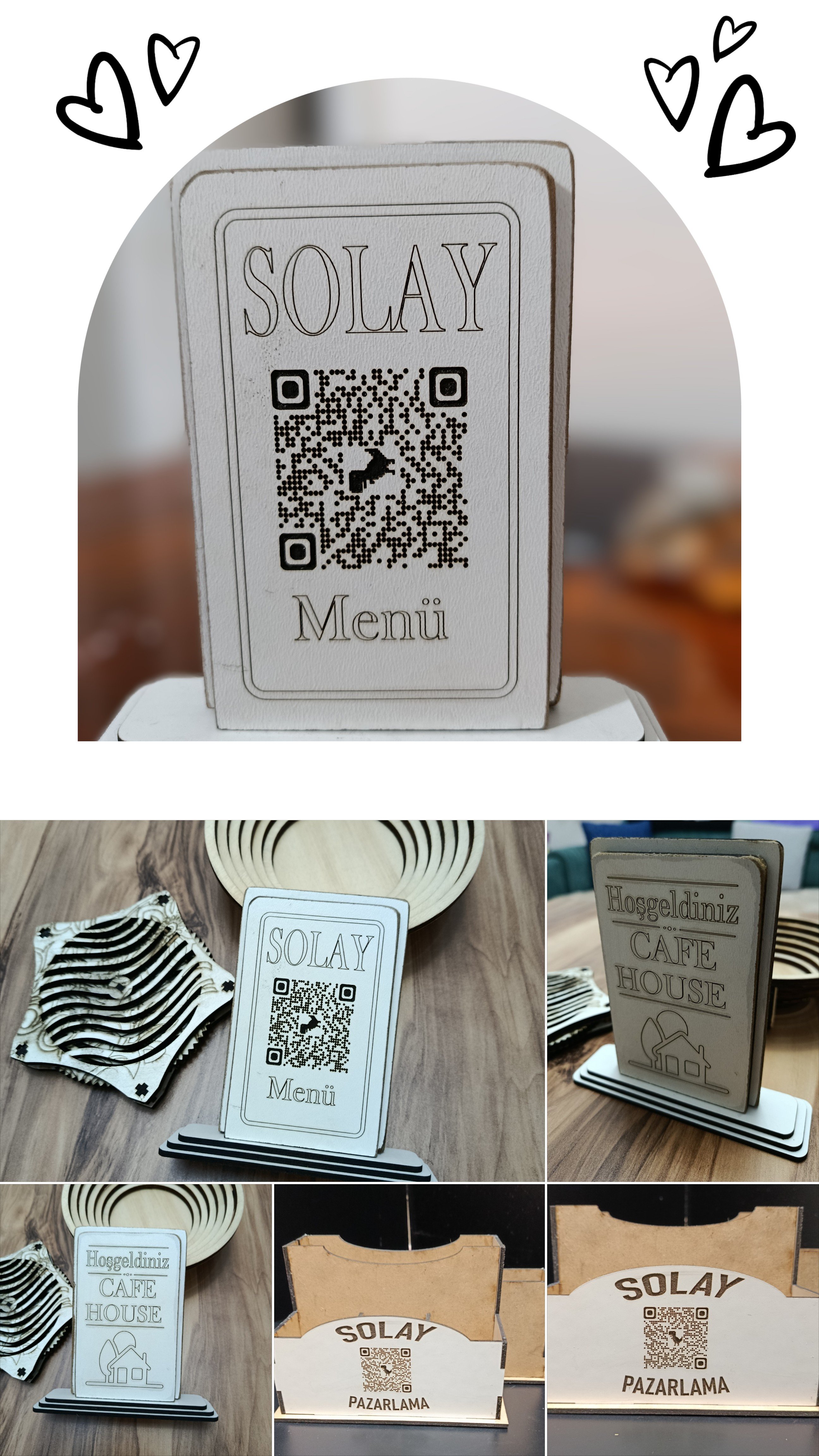 işyerinize özel menü, wifi, URL içeren QR kodlu, firma isimli ve logolu masaüstü stand