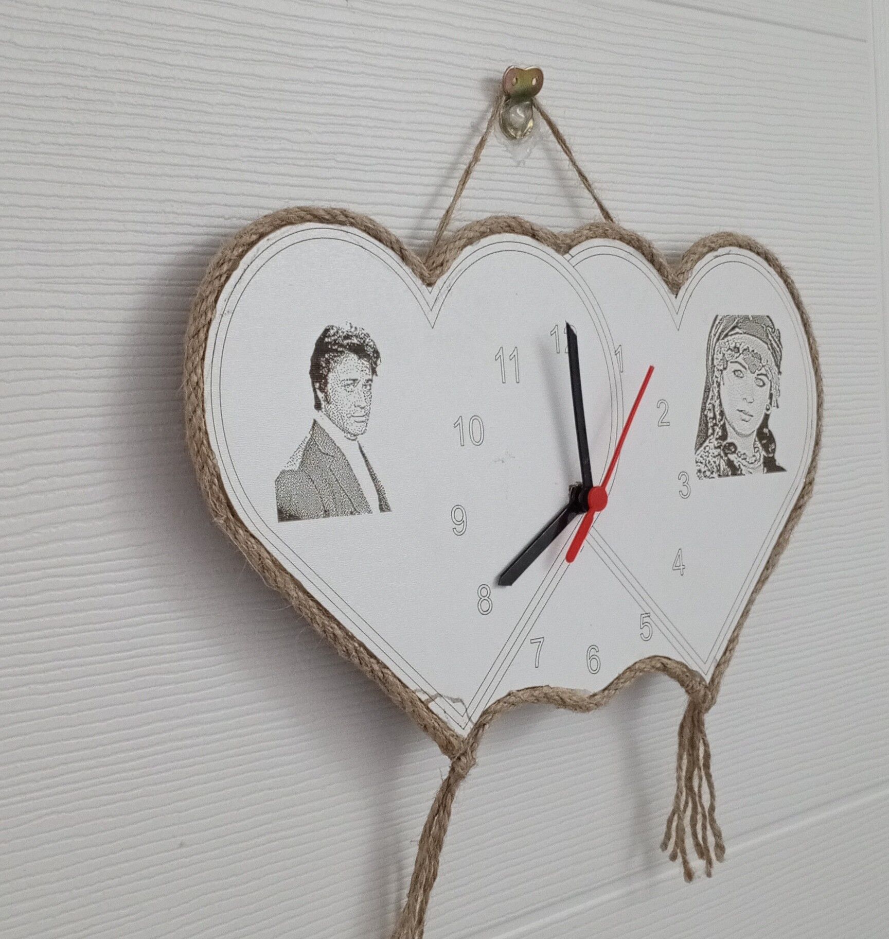 Kalpli resimli duvar saati, 30 cm x 18 cm boyutlarıyla mekanınıza zarif bir dokunuş katmaktadır. MDF malzemeden üretilmiş olan bu saat, dayanıklılığı ve estetik görünümü ile dikkat çekmektedir. Lazer yakma teknolojisi kullanılarak kişiselleştirilebilir özellikleri sayesinde, özel anlarınızı ve sevdiklerinizi ölümsüzleştirmek için ideal bir hediye seçeneği sunar.