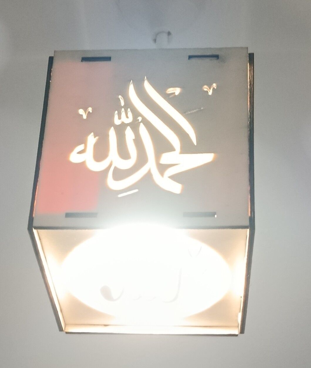 Ahşap lazer kesim tesbihat / Sübhanallah. Elhamdülillah. Allahü ekber / ve maşallah yazılı lambalık. Tavan duylarıyla uyumlu rahatlıkla takılabilecek zarif ve odanıza, işyerinize, mutfağınıza asabileceğiniz lambalık.